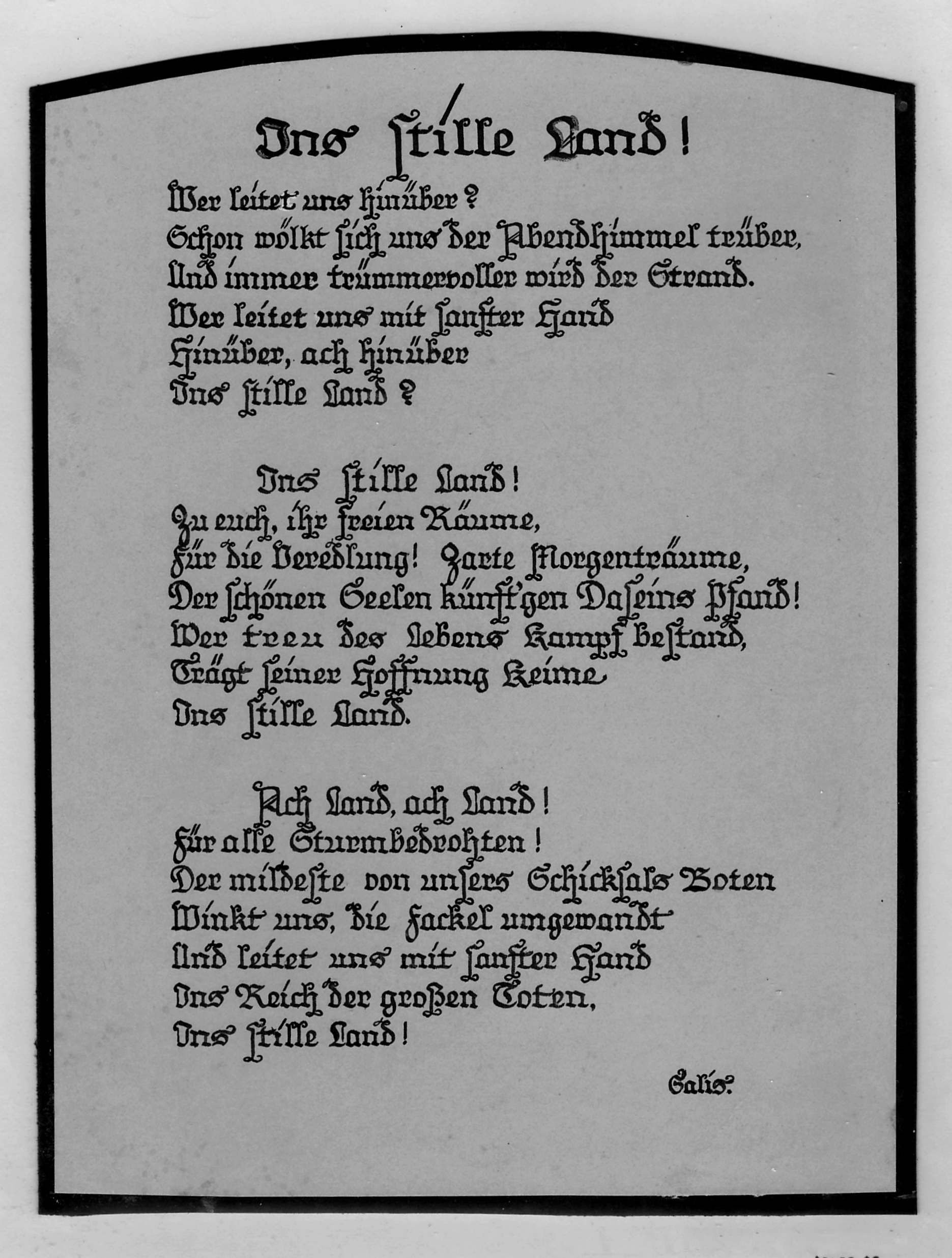 ... geschrieben auf Transparentpapier, von hinten durchleuchtet und von vorn mit einer dicken Glasplatte (geschliffene Kanten) geschützt.