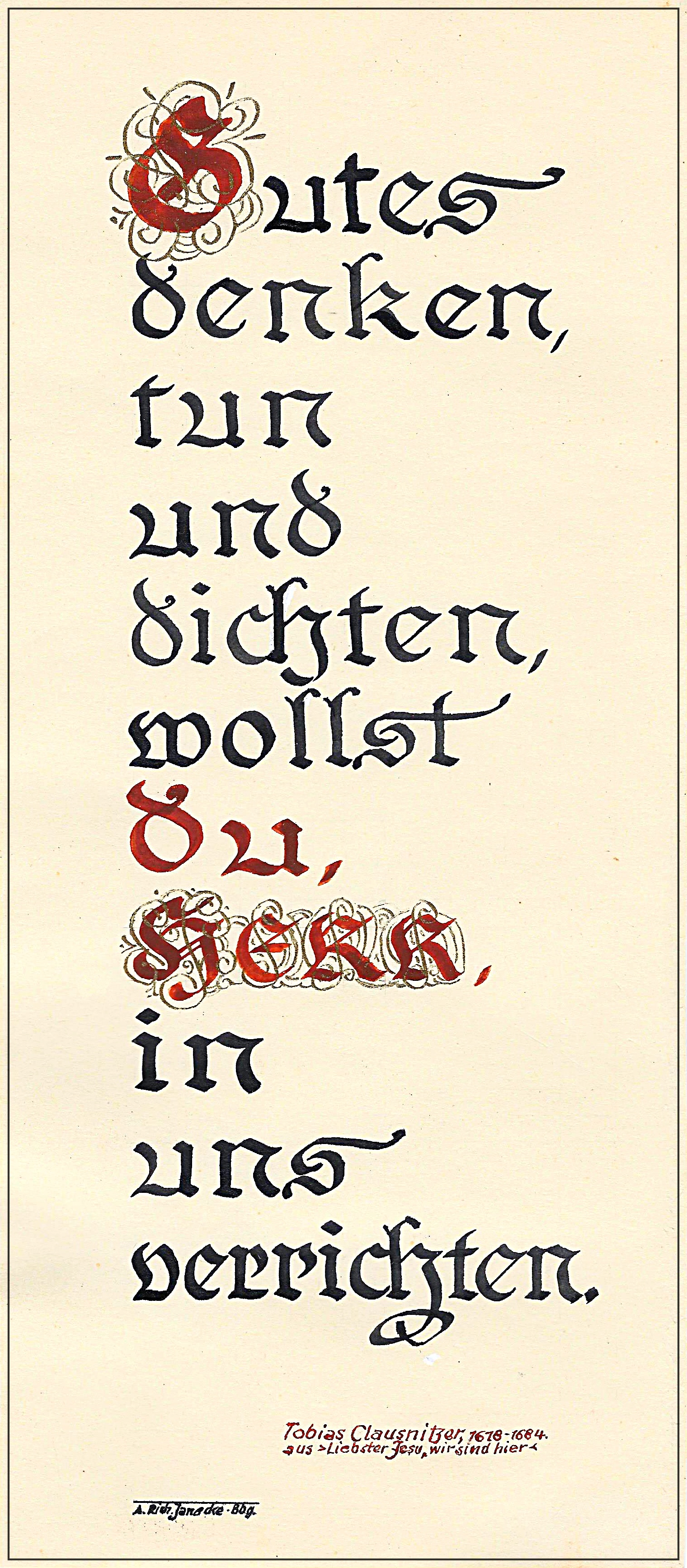 Schriftgestaltung. Beispiele für die handschriftliche Ausführung. Arbeiten von A.Richard Janecke, Nowawes => Potsdam-Babelsberg