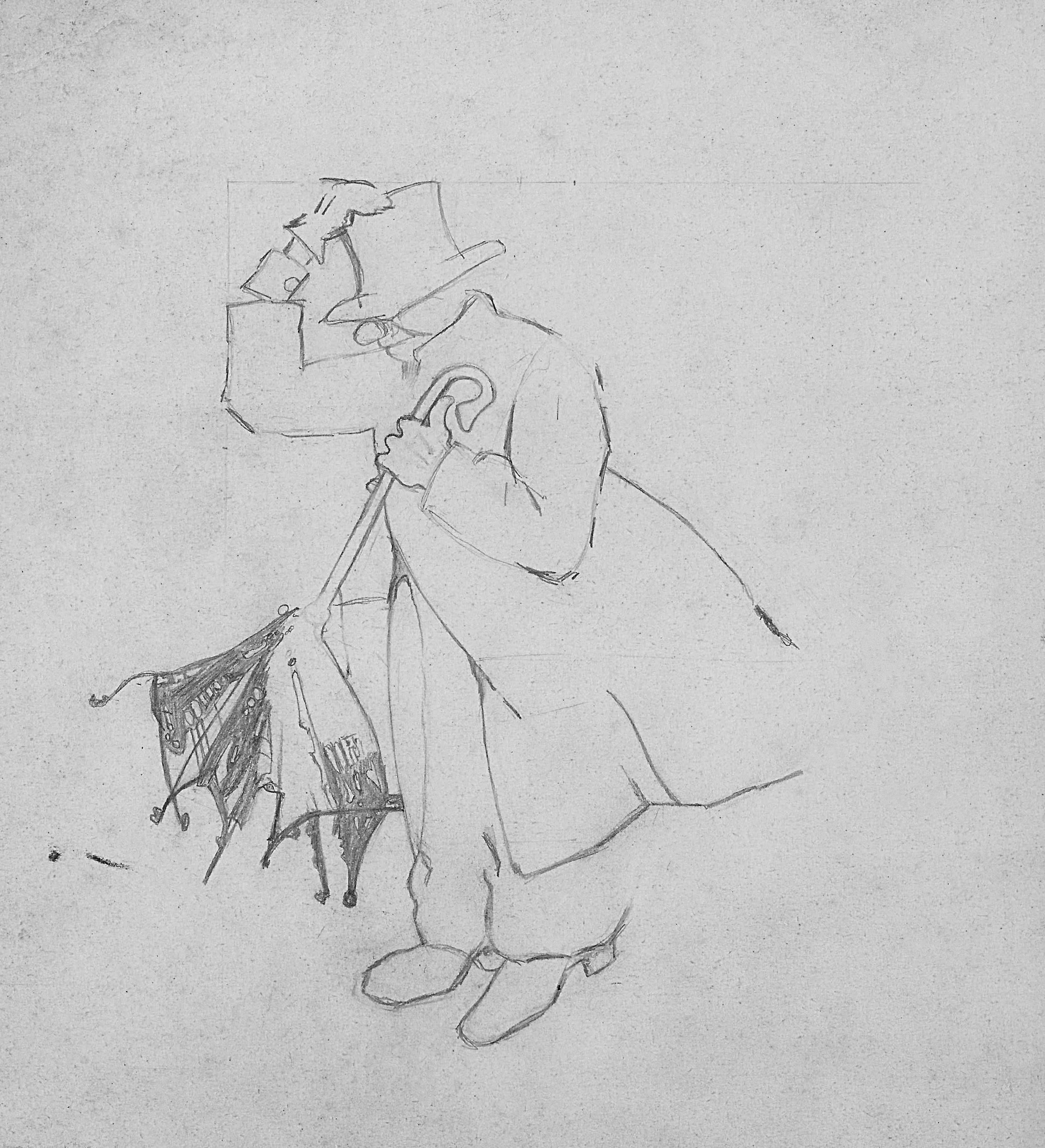 Eine Studie. Bleistiftzeichnung Nr. 6, auf Pappe. Das Original: 20,5 x 18,7 cm.