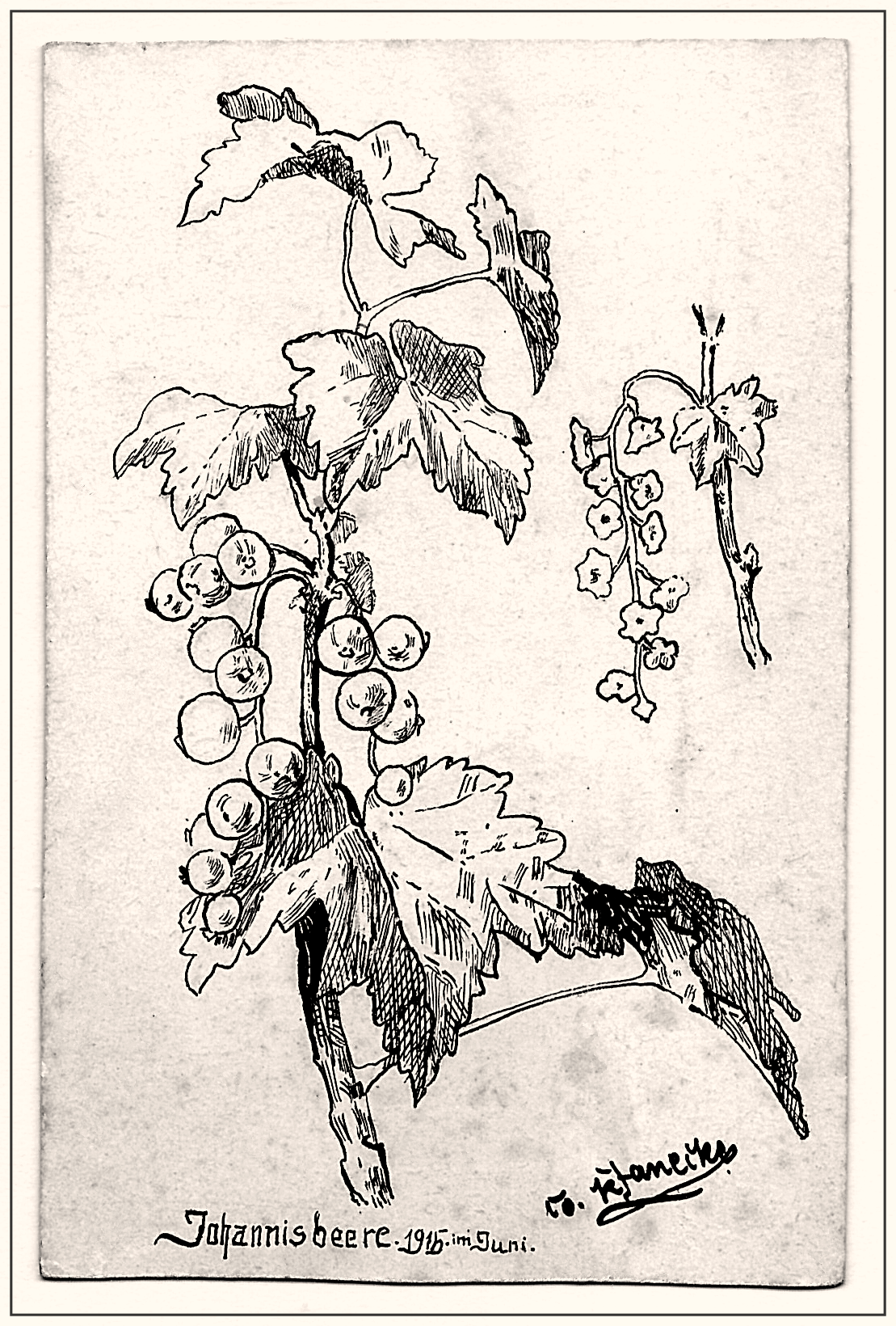 Im Juni 1915 nach der Natur gezeichnet. Federzeichnung. Schwarze Ausziehtusche auf starkem Zeichenkarton. Das Original: 12,8 x 8,4 cm gro