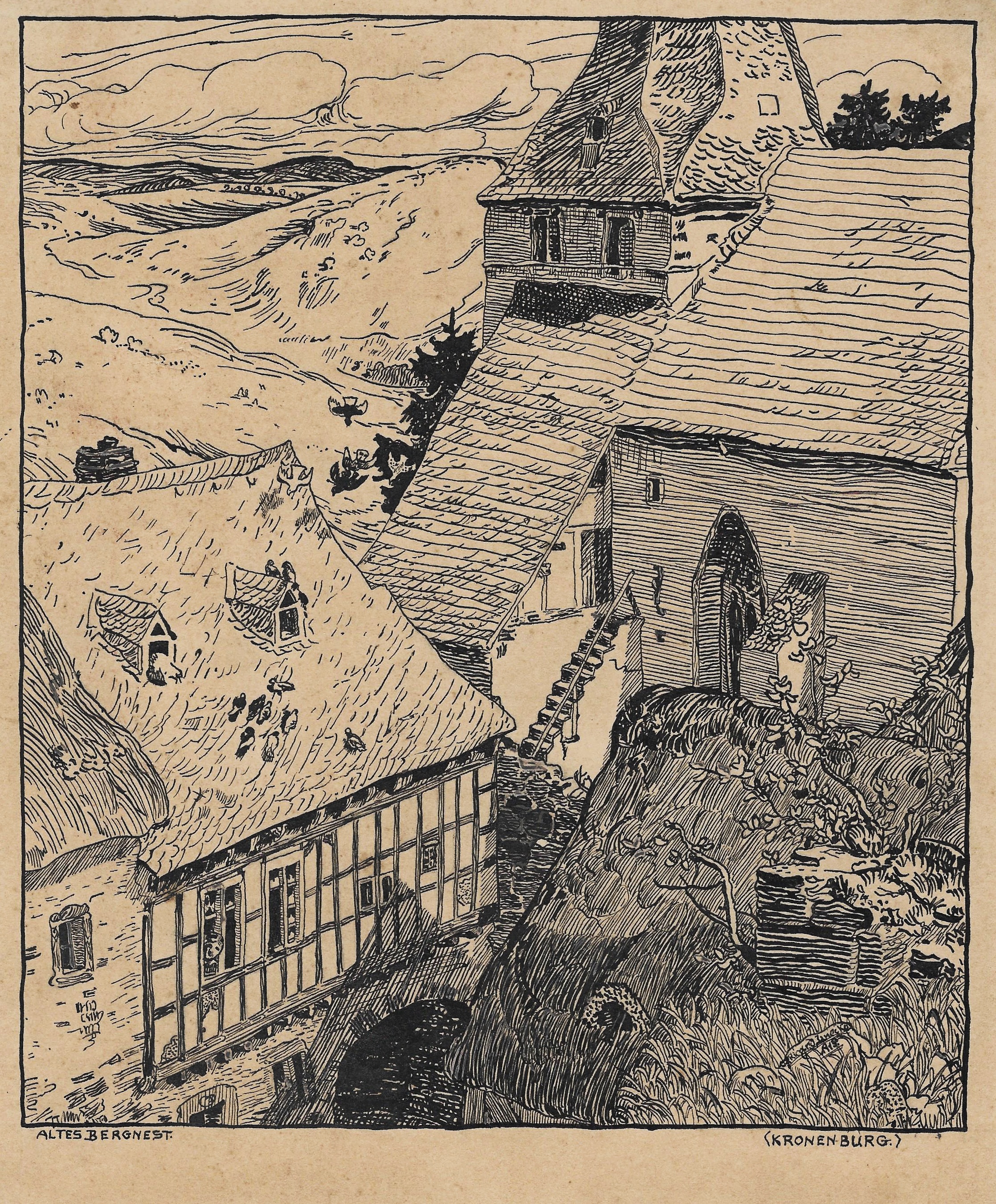 Eine Federzeichnung im Jahre 1919, des inzwischen 18-jährigen Richard Janecke. Das Original hatte die Abmessungen 23 x 19 cm.